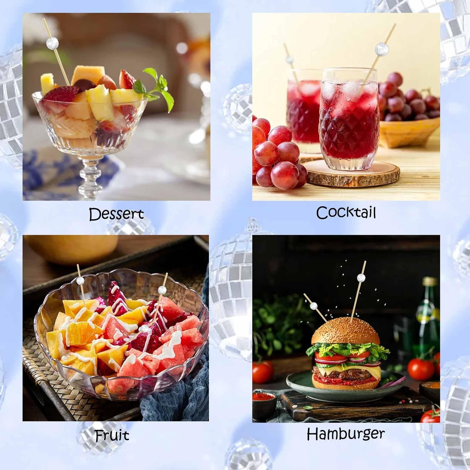 120 Pcs Glitter Ball Cocktail Picks 4.7" Drinks Fruits Hawaiian Party Food Garnish Skewer Sticks Halloween Decorations Supplies Cowboy Handmade Bamboo Toothpicks