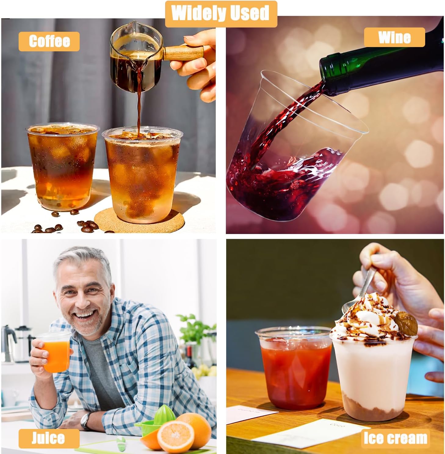- Round Bottom Design: Our plastic cups adopt a round bottom design, and the bottom of our cup is made of thickened material to prevent the cup from tipping over, making it more comfortable to hold; The overall rounded design is very elegant and beautiful for holding coffee or drinks