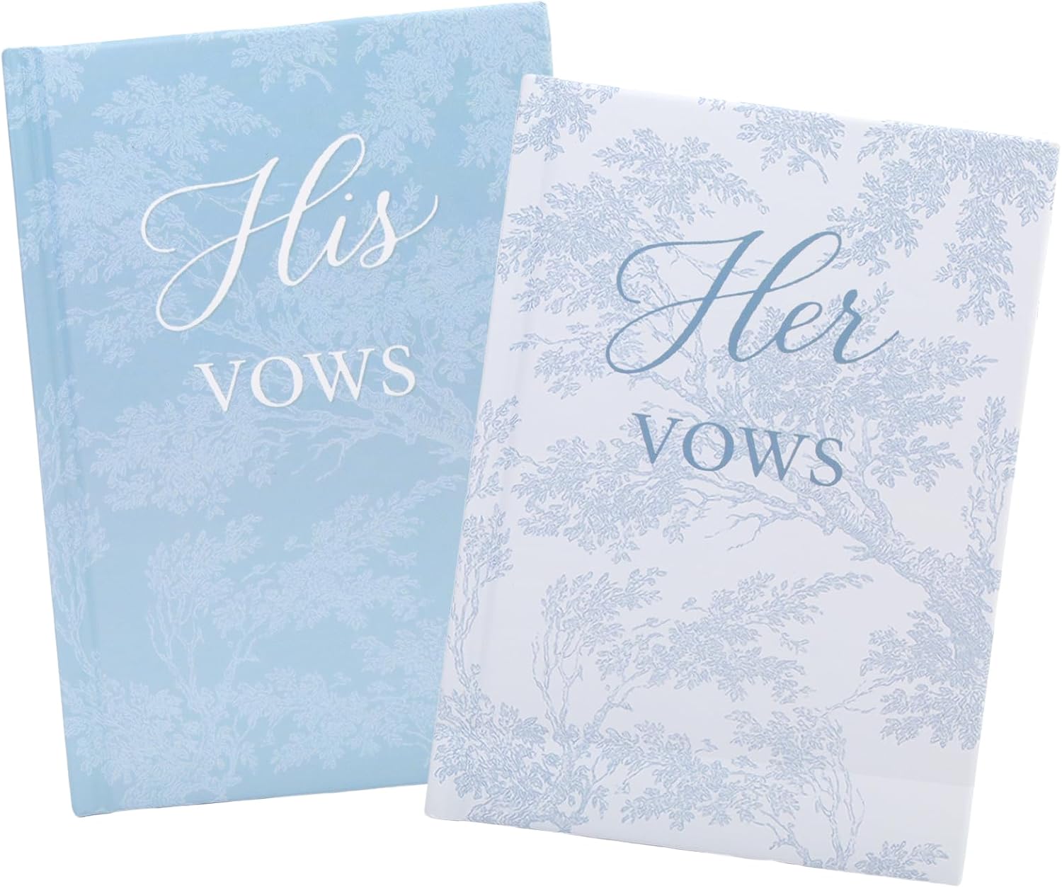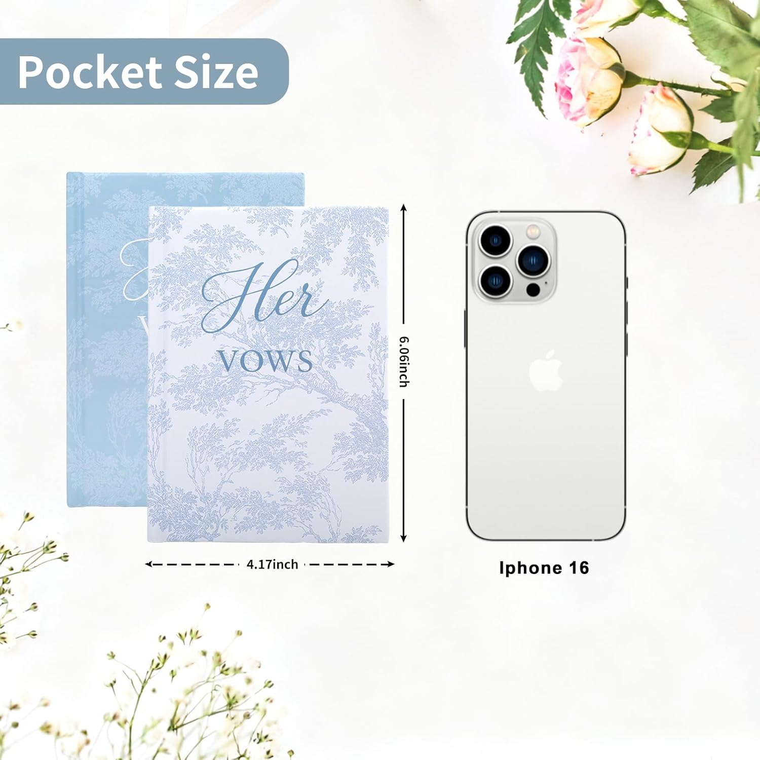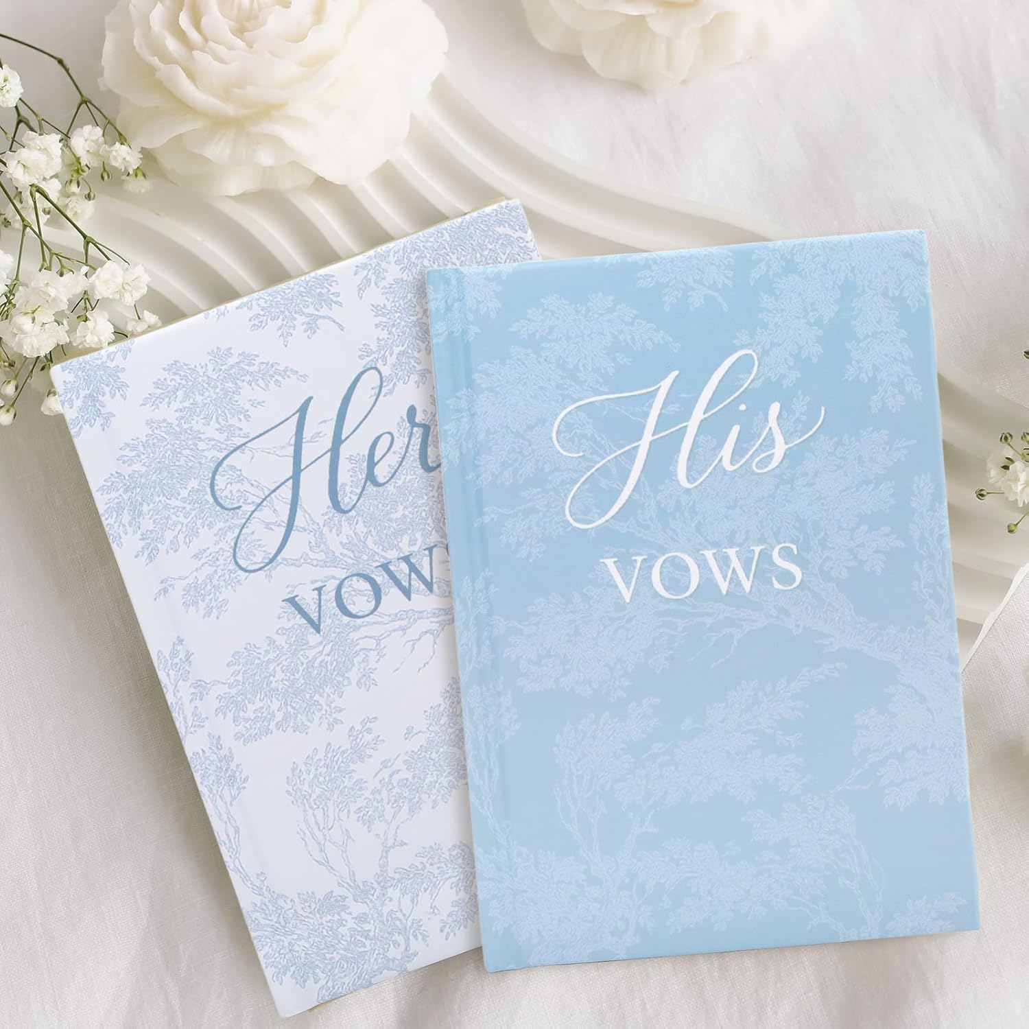 His and Hers Vow Books for Wedding, 2 Pack Hardcover Vows Book with Toile-Inspired Design, 48 Sheets 120gsm Thick Paper, Elegant Wedding Ceremony Stuff, 4.13" × 6", Blue