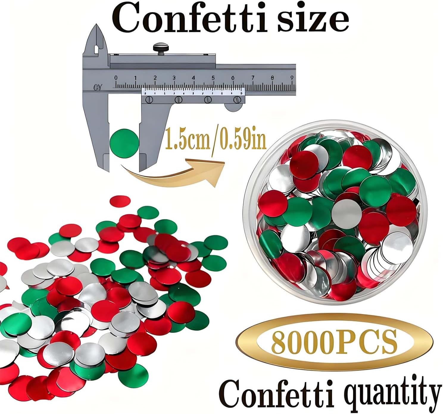 Red White and Green Round Foil Metallic Confetti for Fill Balloons, Wedding, Birthday, Christmas Party, Festival Decoration(8000PCS)
