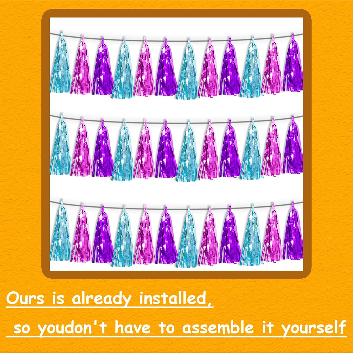 - 【Package Includes】The total length of the Lake Blue Purple-Hot Pink birthday tassels banner is 30 feet, divided into 3 strips, each 10 feet long. Each banner contains 15 tassels, and each tassel measures 14 inches, for birthday decorations many occasions uitable for Patriotic display, Homecoming Float, Christmas Float, ecorative metal trailers, graduation floats etc