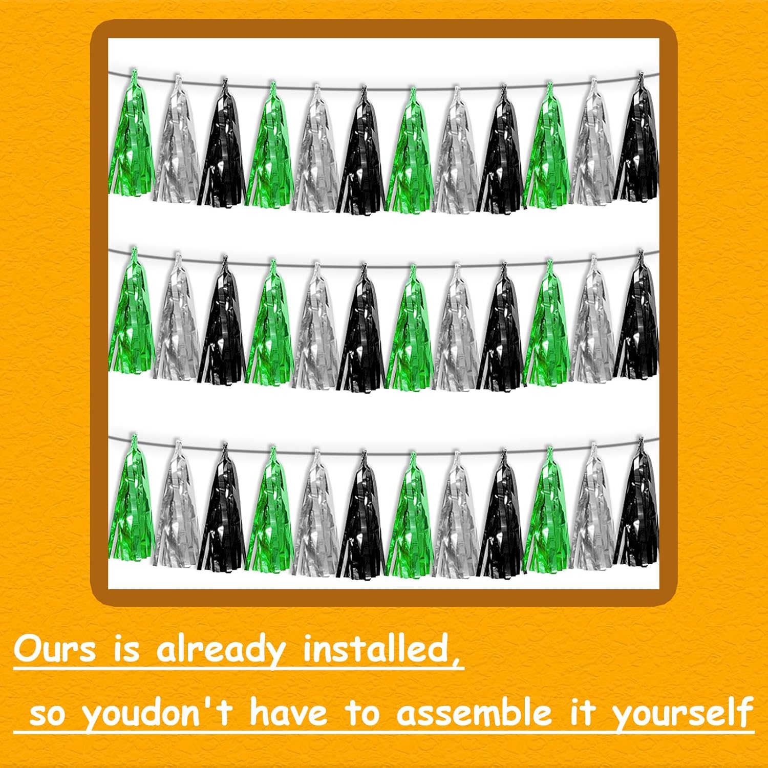 - 【Package Includes】The total length of them Black Silver Green birthday tassels banner is 30 feet, divided into 3 strips, each 10 feet long. Each banner contains 15 tassels, and each tassel measures 14 inches, for birthday decorations many occasions uitable for Patriotic display, Homecoming Float, Christmas Float, ecorative metal trailers, graduation floats etc