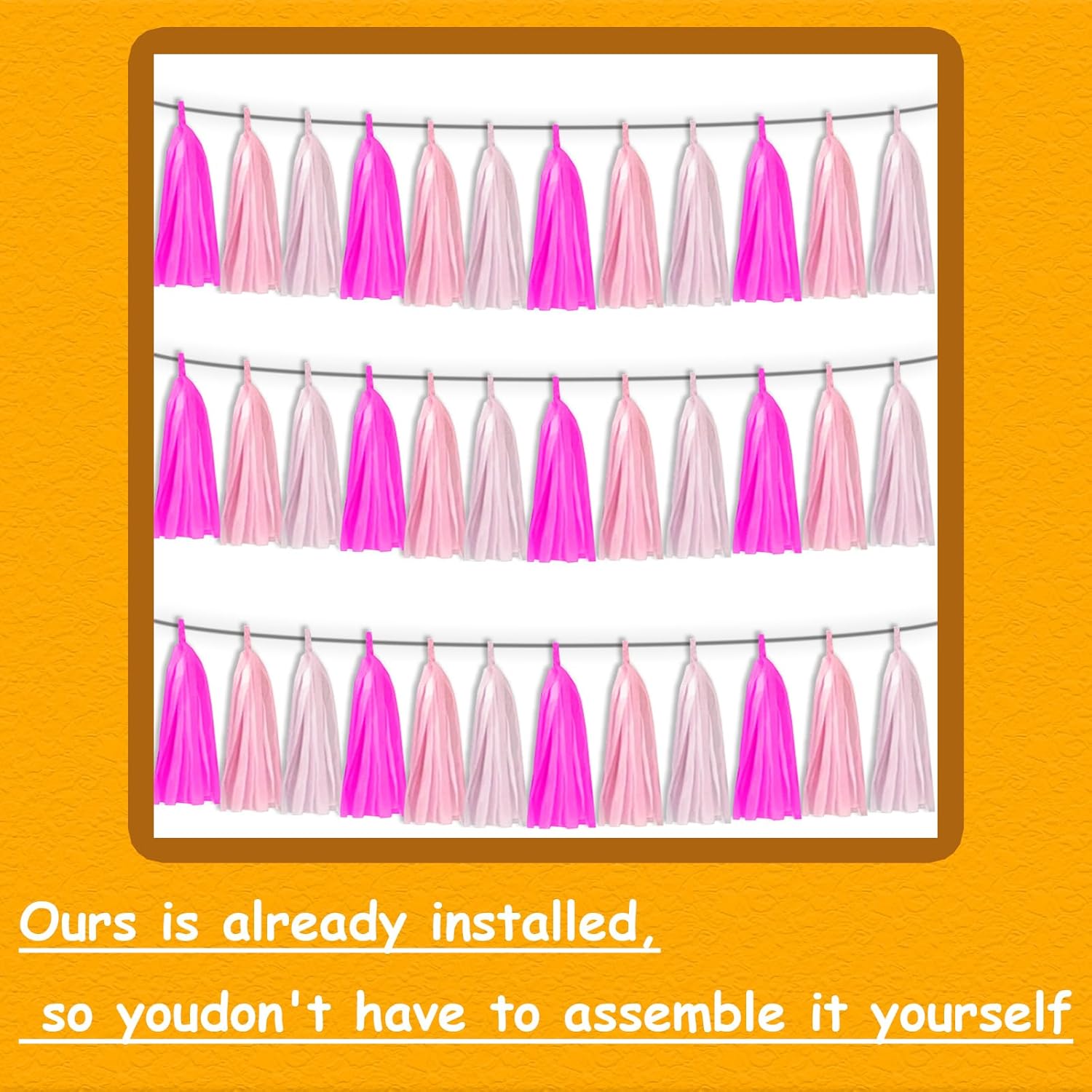 - 【Package Includes】The total length of the Maca pink, maca rose red, maca light pink birthday tassels banner is 30 feet, divided into 3 strips, each 10 feet long. Each banner contains 15 tassels, and each tassel measures 14 inches, for birthday decorations many occasions uitable for Patriotic display, Homecoming Float, Christmas Float, ecorative metal trailers, graduation floats etc