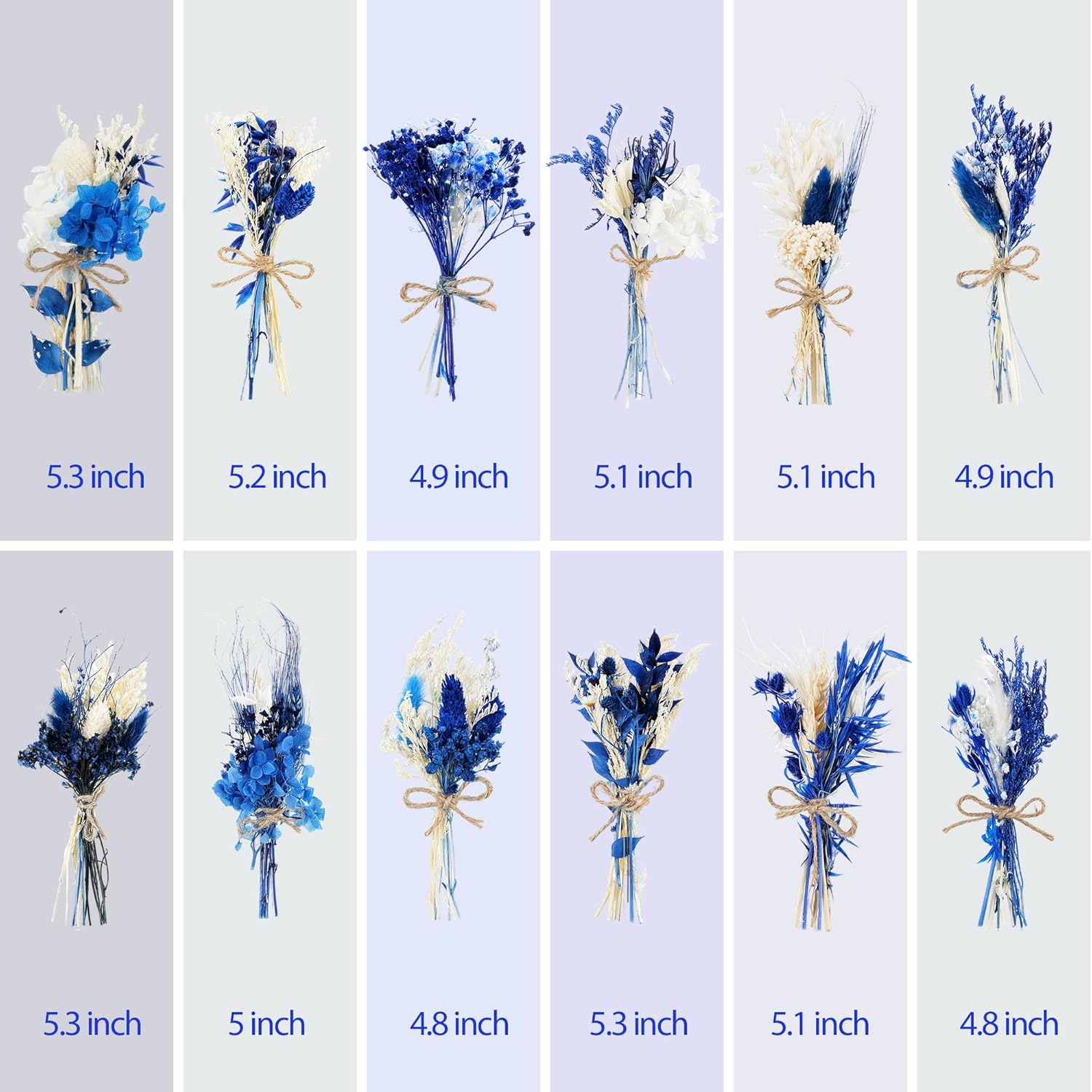 10/12/24/36 Pack Mini Dried Flowers for Vase Wedding Various Mini Bouquet Dried Small Wildflowers Natural Flowers Bulk for Crafts DIY Decor (12, Blue)