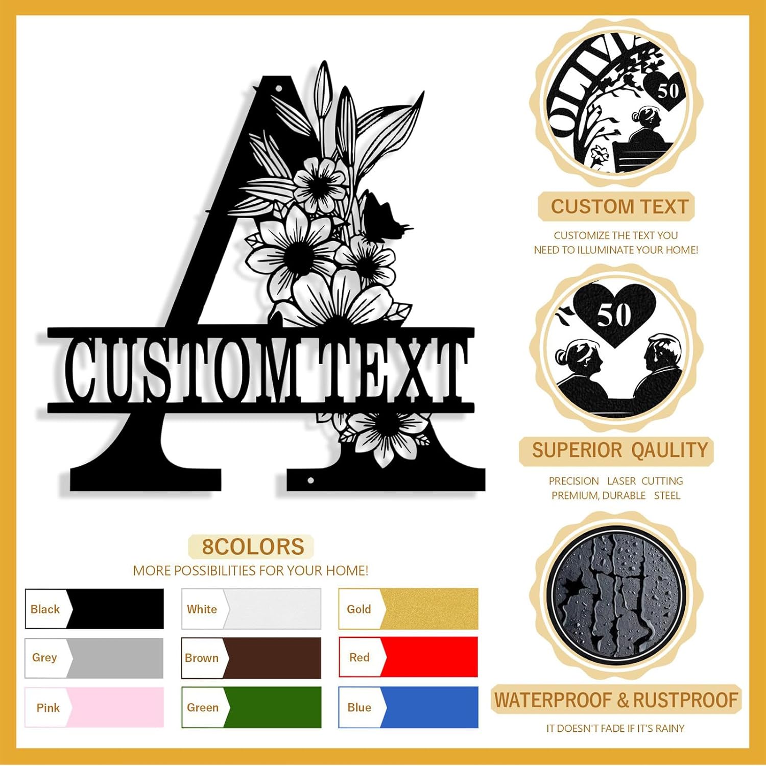 - Premium Quality Materials - Crafted from sturdy and durable steel, meticulously laser-cut for a precise shape and smooth, clean edges. These last name signs for home are built to last and finished with a weather-resistant powder coating that prevents fading, rust, and corrosion, ensuring lasting beauty both indoors and outdoors