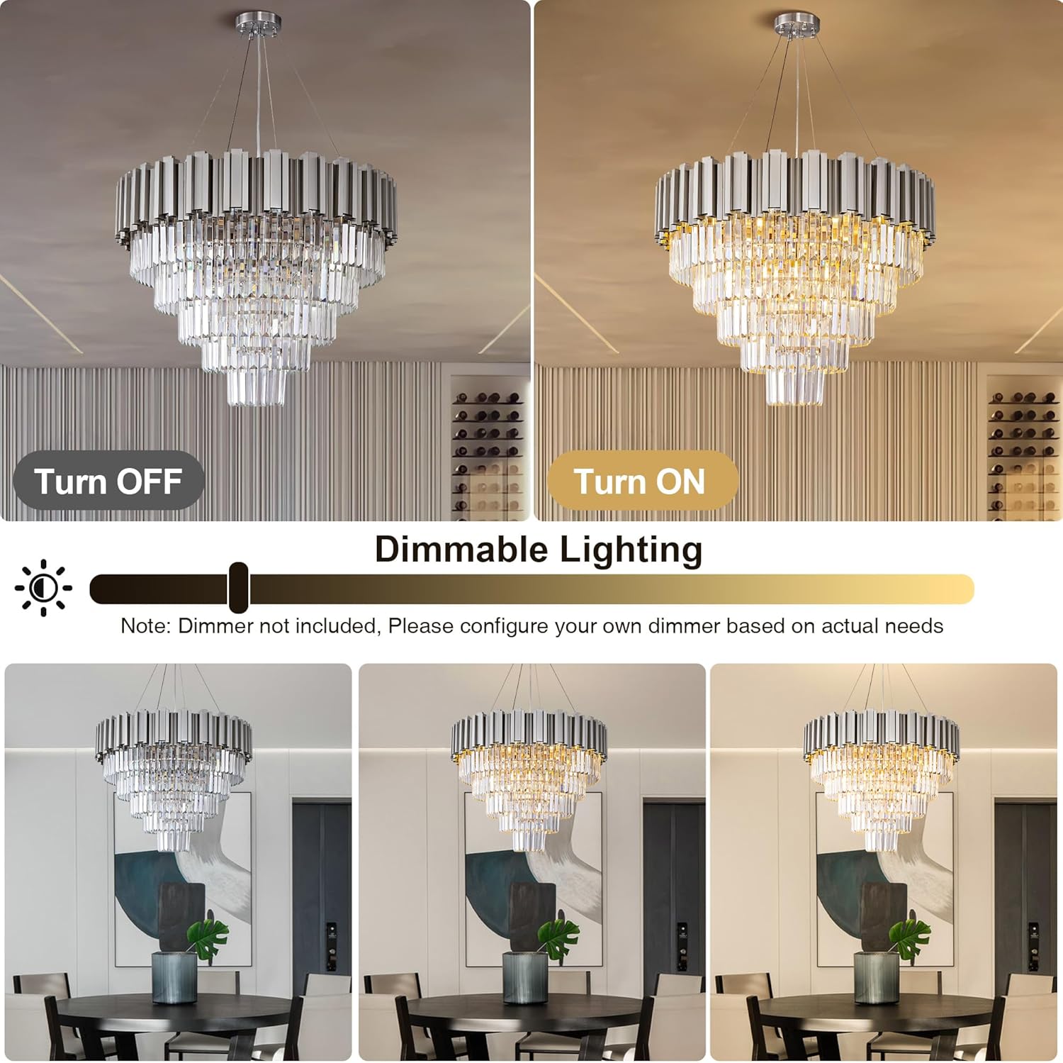 - 【Luxury Crystal Chandelier】This modern chandelier is crafted with premium silver frame and 100% top K9 transparent crystals that exude a diamond-like brilliance. With 5 tiers and 228 sparkling crystals adds brilliance and sophistication, each crystal refracts light beautifully, creating a dazzling, luxurious atmosphere for your home.