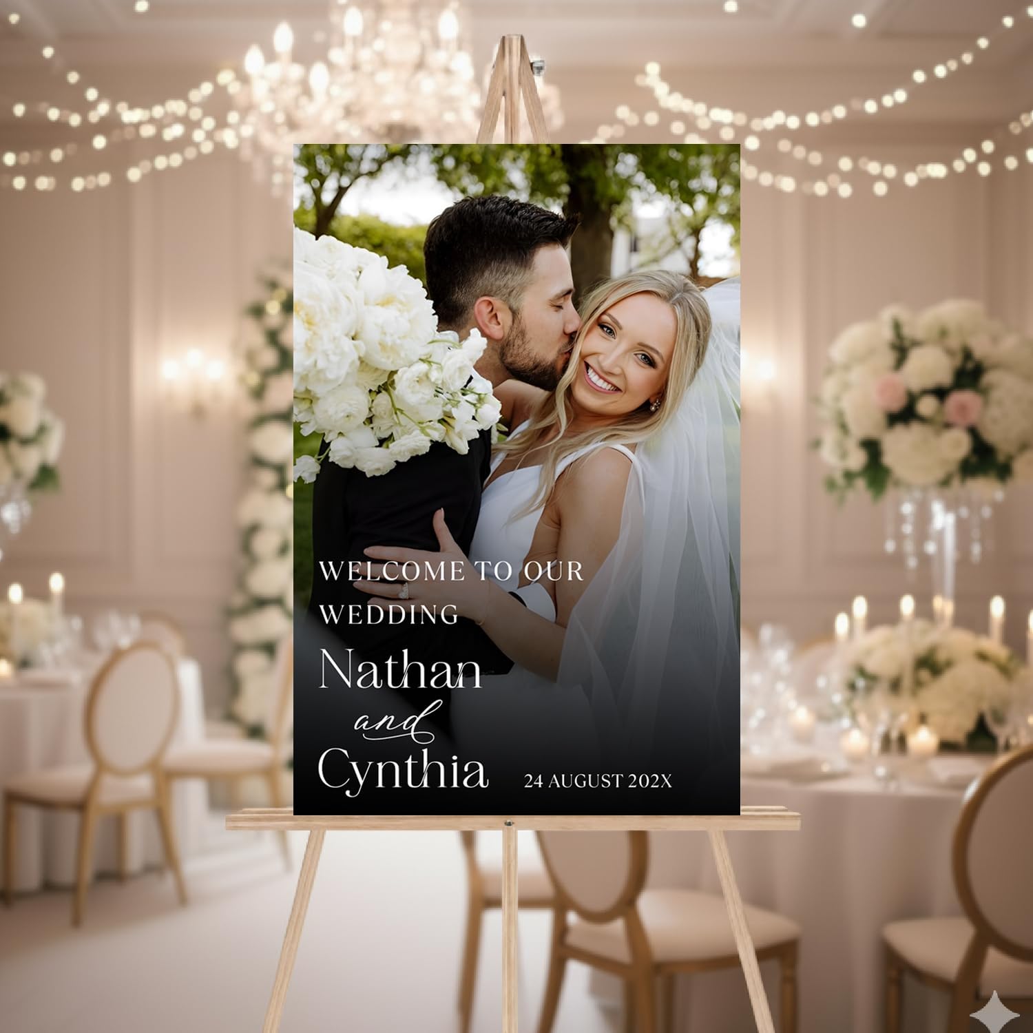 Personalized Wedding Photo Acrylic Welcome Sign – Custom Picture Board with Bride & Groom Names, Elegant Acrylic Wedding Reception Entrance or Ceremony Decoration, Indoor & Outdoor Keepsake Gift #15