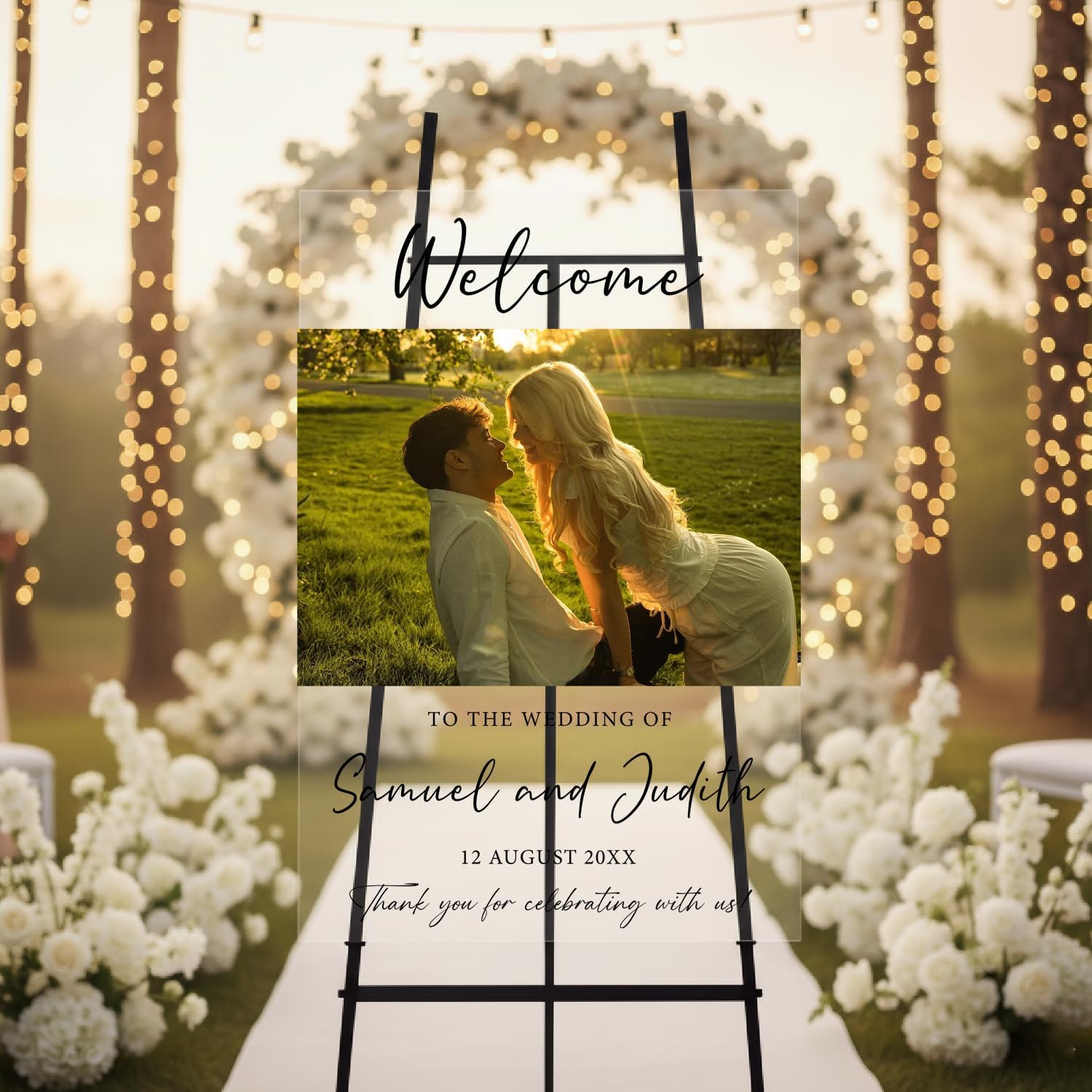 - 💍【Versatile Display Options】Our acrylic wedding sign can be placed on an easel, displayed on a stand, or mounted on walls. Suitable for both indoor and outdoor celebrations.
