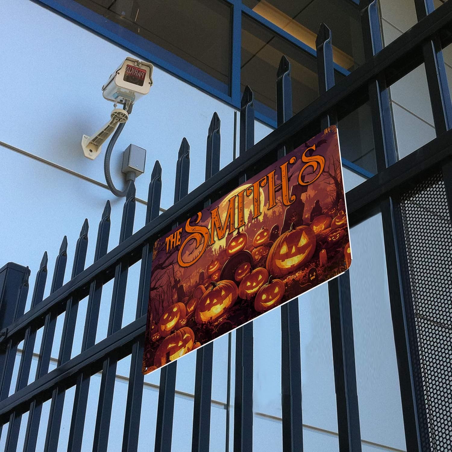 Personalized Halloween Metal Sign with Family's Name or Text Custom Pumpkin Wall Decor Signs Fade Resistance for Indoor Outdoor Spooky Gifts for Friends Family