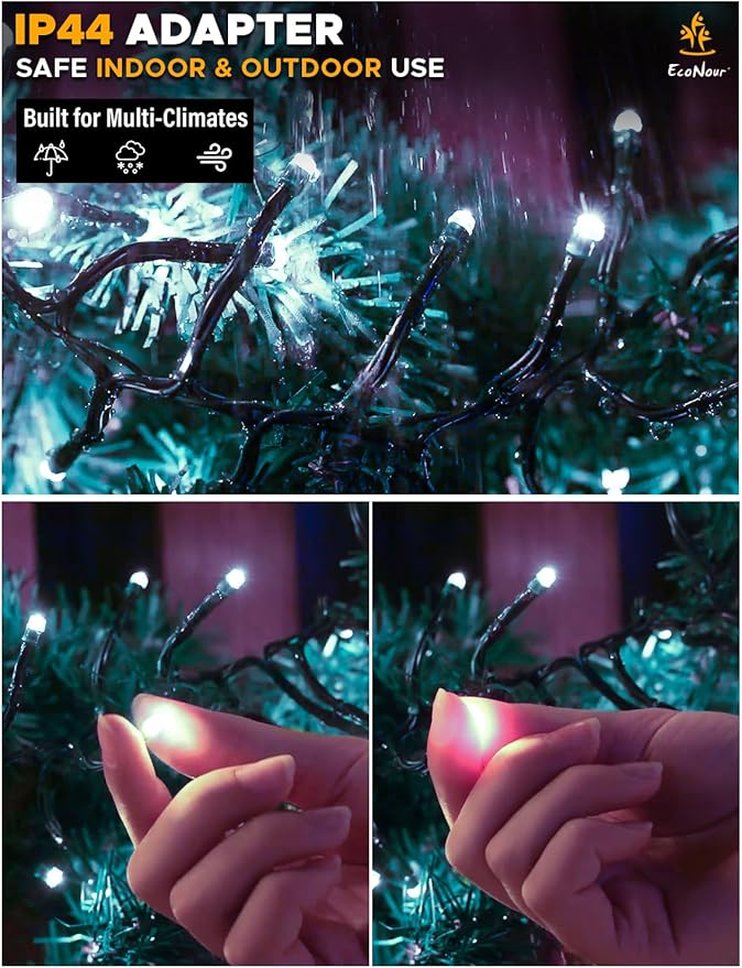 - Bright & Festive Cluster Lights for Christmas Tree : Transform your home into a sparkling wonderland with EcoNour LED Cluster Christmas Lights! These cluster twinkle lights for Christmas tree and garland add a rich, dense glow perfect for decorating trees, windows, balconies, and fireplaces. The warm white cluster Christmas tree lights create a cozy festive atmosphere ideal for holiday décor, parties, and outdoor displays.