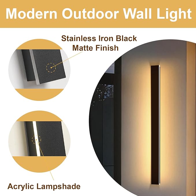 - [Modern Simple Style] This linear outside wall light features a clean and streamlined silhouette, fits a Wide Range of Modern Spaces, creating a modern minimalist look that enhances any exterior or interior space. Its long, slim profile adds architectural depth and delivers a refined, contemporary aesthetic.